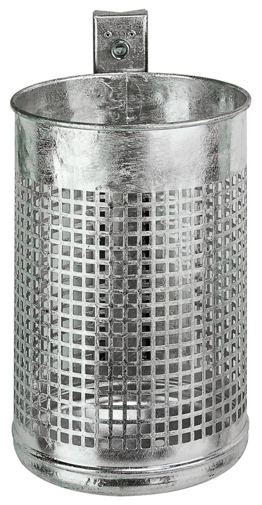 Abfallbehälter 20 l, Ausf. gelocht, DxH. 265x410 mm, inkl. Befestigungsschiene + Dreikantschlüssel, feuerverzinkt E876204