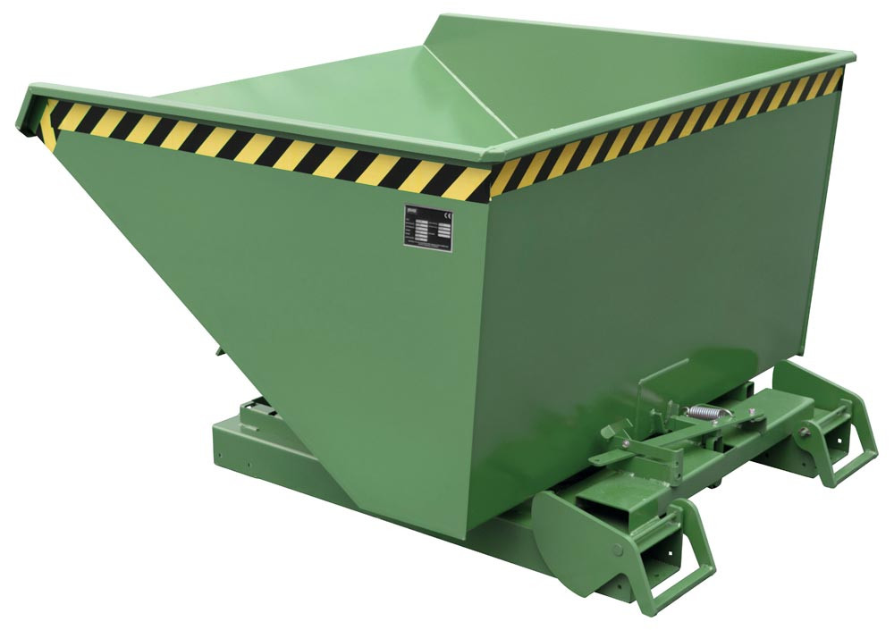 Automatischer Kippbehälter, LxBxH 1485x1570x865 mm, Vol. 0,9 cbm, Traglast 1000 kg, RAL 6011 resedagrün