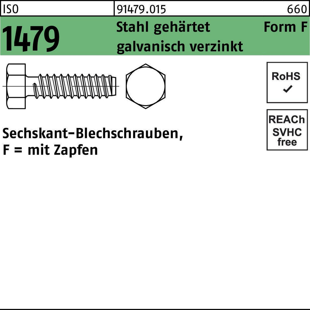 ISO 1479 Stahl · geh. Form F galvanisch verzinkt Sechskant-Blechschrauben · F = mit Zapfen - Abmessung: 4,8 x 9,5 -F VE=S (500 Stück )