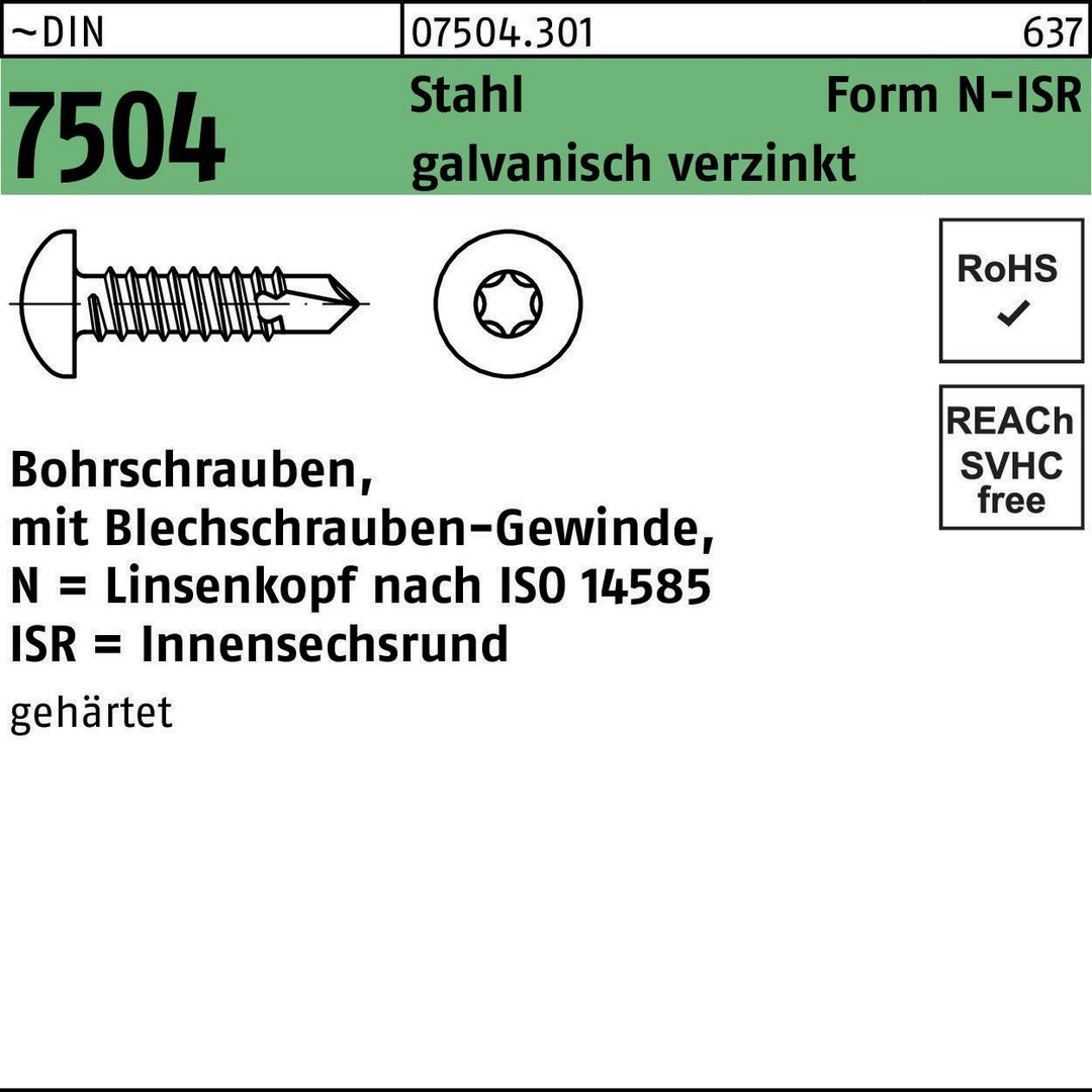 ~DIN 7504 Stahl Form N-ISR galvanisch verzinkt Bohrschrauben · mit Blechschrauben-Gew. · mit Linsenkopf nach ISO 14585 · mit ISR - Abmessung: N 3,5 x 13 -T15 VE=S (1000 Stück )