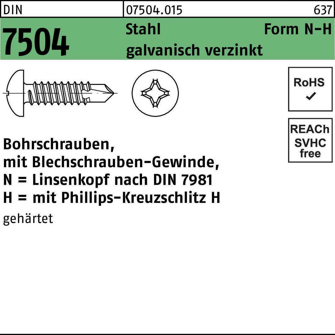 DIN 7504 Stahl Form N-H galvanisch verzinkt Bohrschrauben · mit Blechschrauben-Gew. · mit Linsenkopf nach DIN 7981 · mit KS -H - Abmessung: N 2,9 x 16 -H VE=S (1000 Stück )