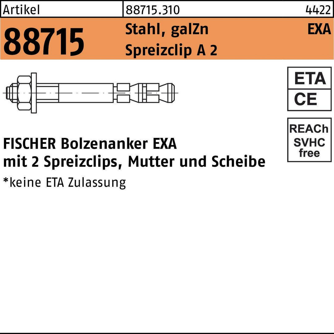 Artikel 88715 Stahl · galZn EXA Spreizclip A 2 FISCHER Bolzenanker EXA mit 2 Spreizclips · Mutter und Scheibe - Abmessung: EXA 10/140 VE=S (25 Stück)