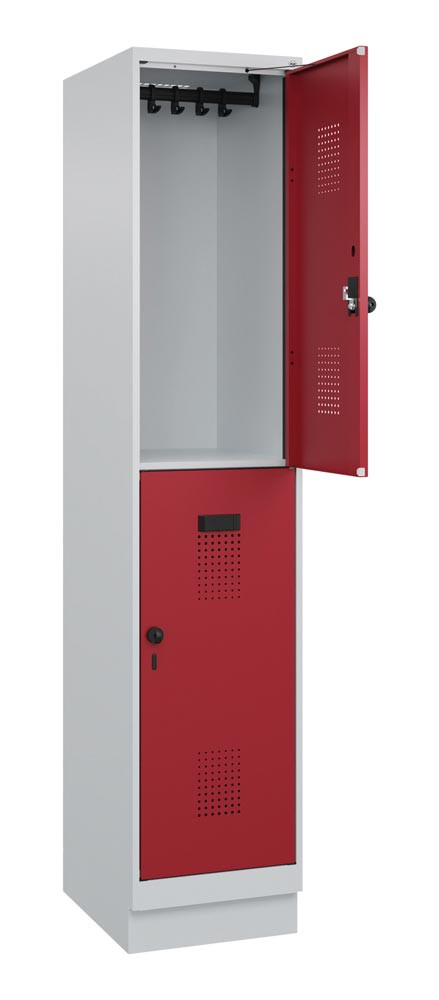 Fächerschrank, Stahl, doppelstöckig, 1x2 Fächer, Abt.B 400 mm, Sockel, Drehriegel, BxTxH 400x500x1950 mm, Farbwahl