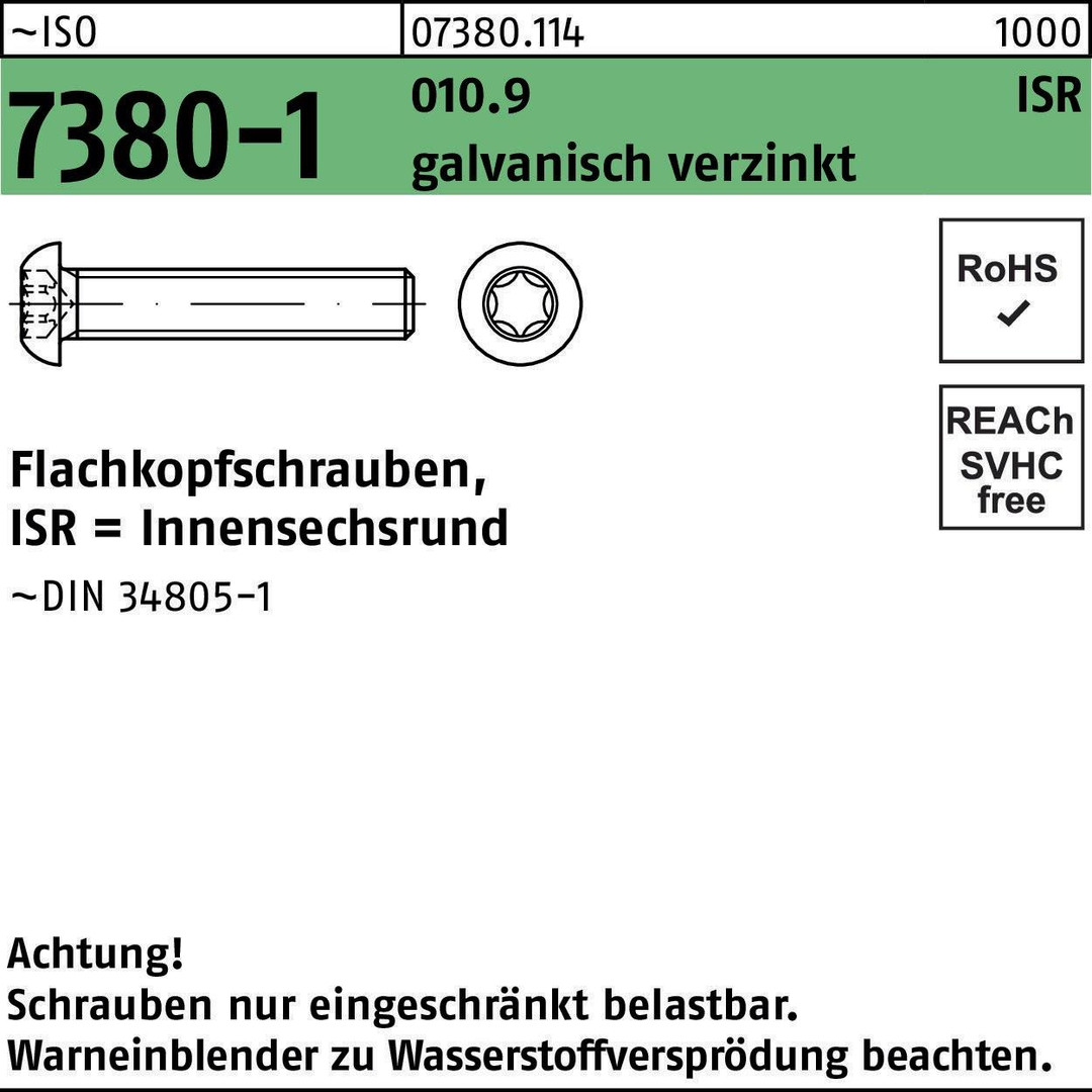 | Typenbezeichnung | Flachkopfschrauben, ISR = Innensechsrund |