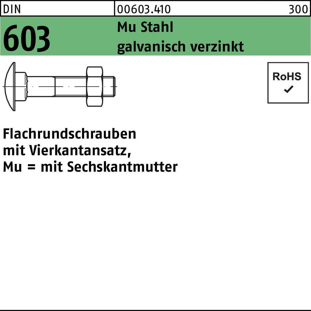 DIN 603 Mu Stahl galvanisch verzinkt Flachrundschrauben mit Vierkantansatz Mu = mit Sechskantmutter - Abmessung: M 5 x 20 VE=S (500 Stück )