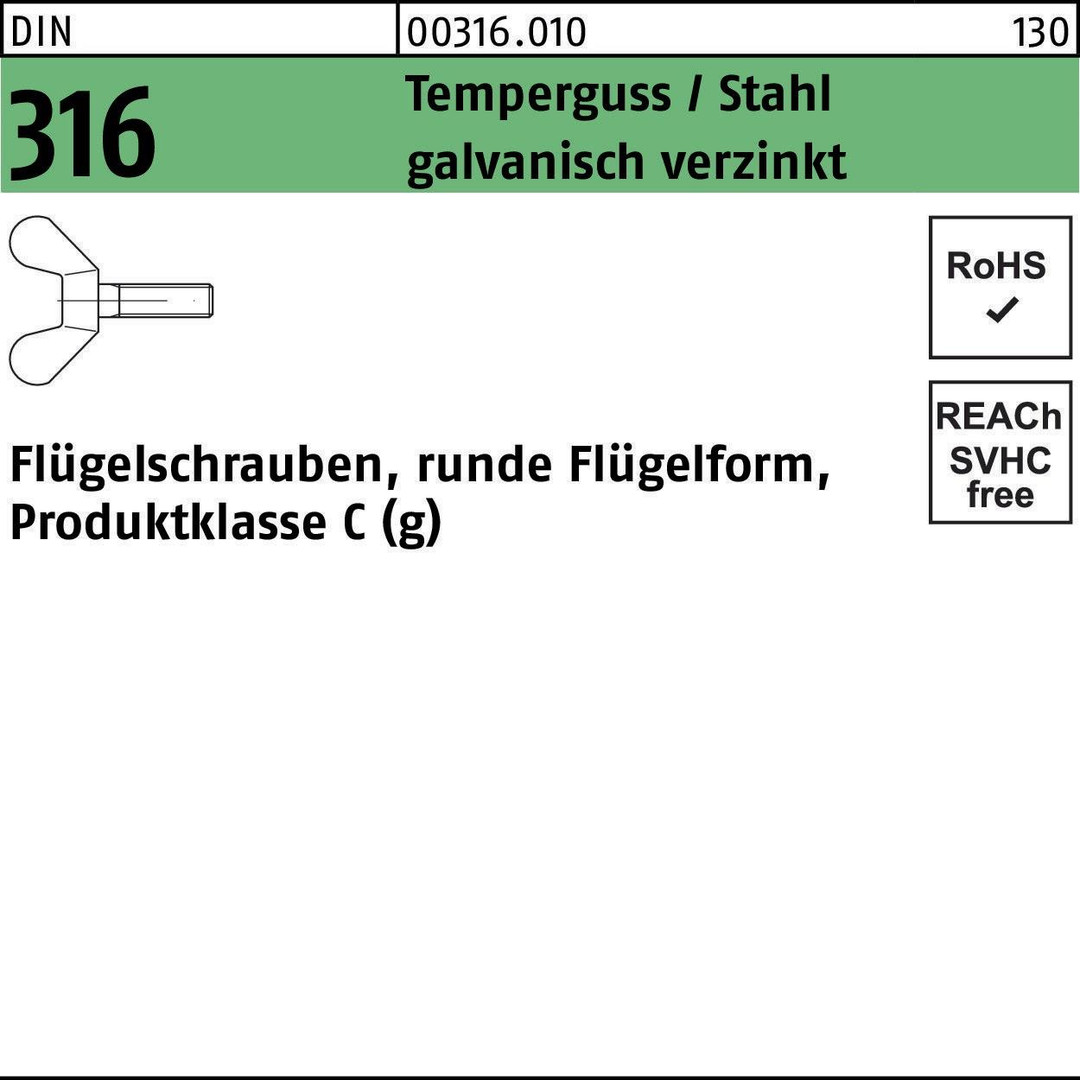 Flügelschraube DIN 316 M4x 16 Temperguss/Stahl galv.verz. 100 Stück 8000155482