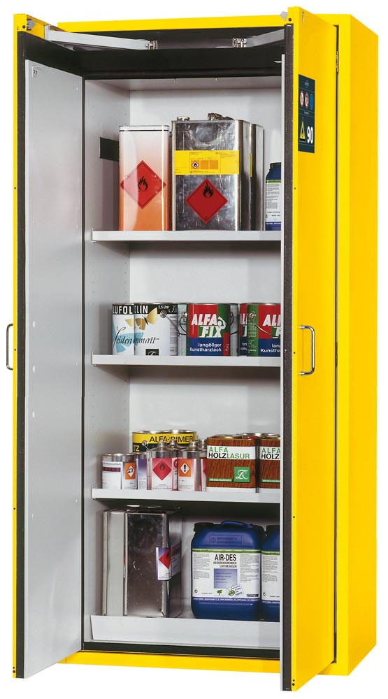 ∙ Zur vorschriftsmäßigen Lagerung von Gefahrstoffen in Arbeitsräumen gemäß DIN EN 14470-1 (Typ 90) und TRGS 510 Anhang 1