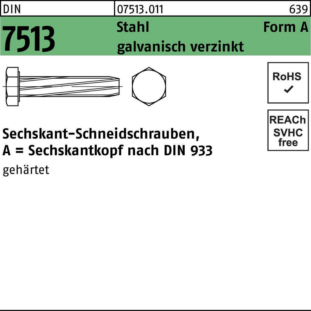 Gewindeschneidschraube DIN 7513 FormA Sechskant AM 4x16 Stahl galv.verz. 1000St. 8000213908