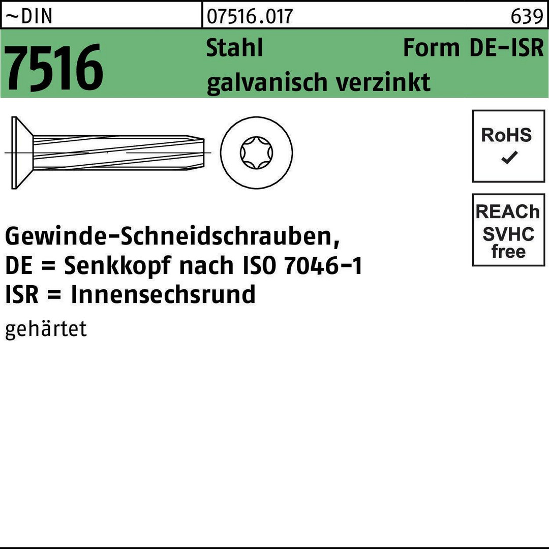 ~DIN 7516 Stahl Form DE-ISR galvanisch verzinkt Gewinde-Schneidschrauben mit Senkkopf nach ISO 7046-1 · ISR - Abmessung: DE M 8 x 25 -T45 VE=S (250 Stück )
