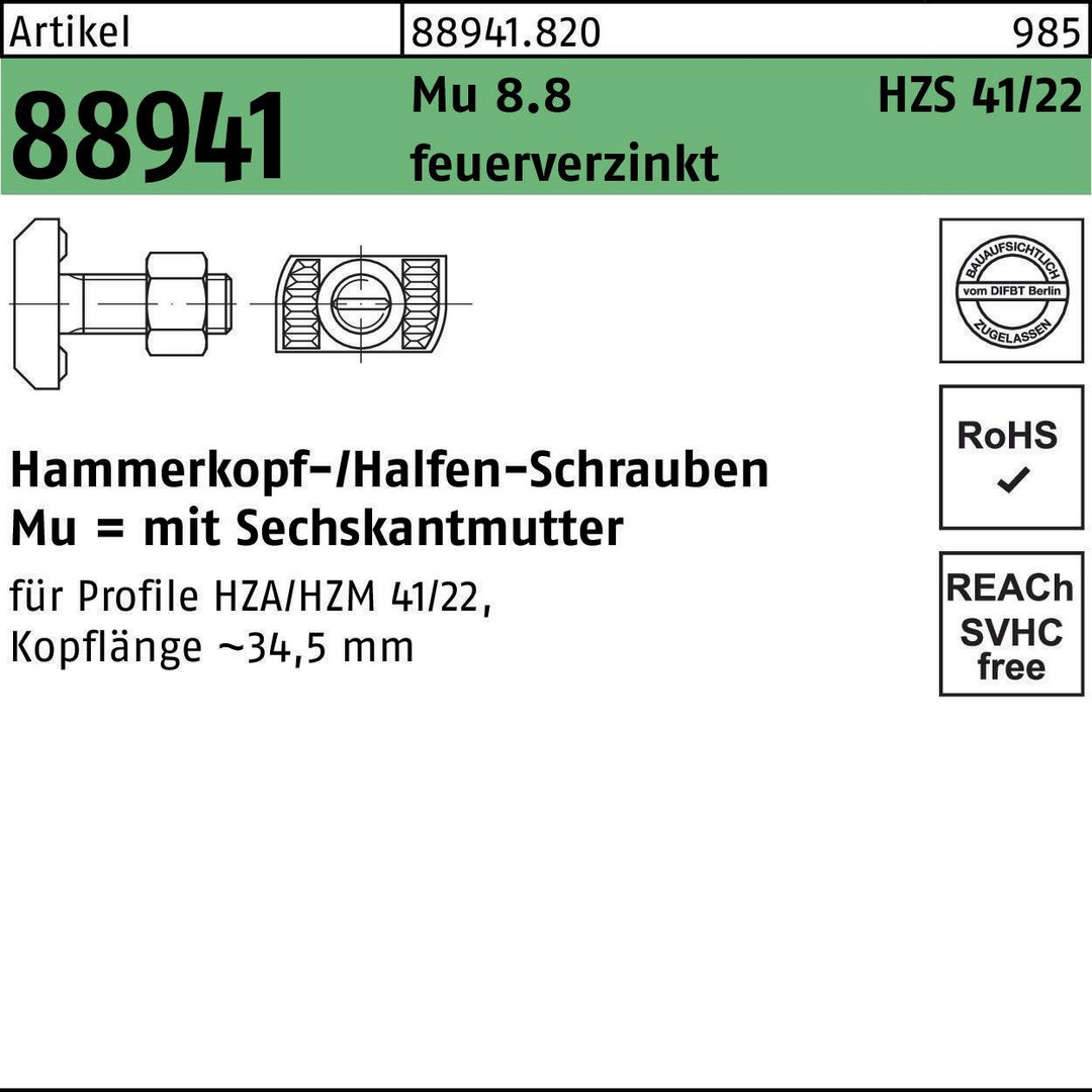 Hammerkopfschraube R 88941 HZS41/22 6ktmu. M12x50 Mu8.8 feuerverz. 100St. HALFEN 8000232808