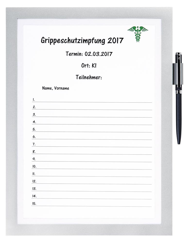 selbstklebend · Format DIN A4 · magnetische Vorderseite für schnelles und bequemes Wechseln von Informationen · direktes Beschriften des Dokumentes · Füllhöhe bis zu 5 Blatt 80g/qm · Stiftehalter für alle Stifte mit Befestigungsclip · haftet dauerhaft auf allen glatten Oberflächen