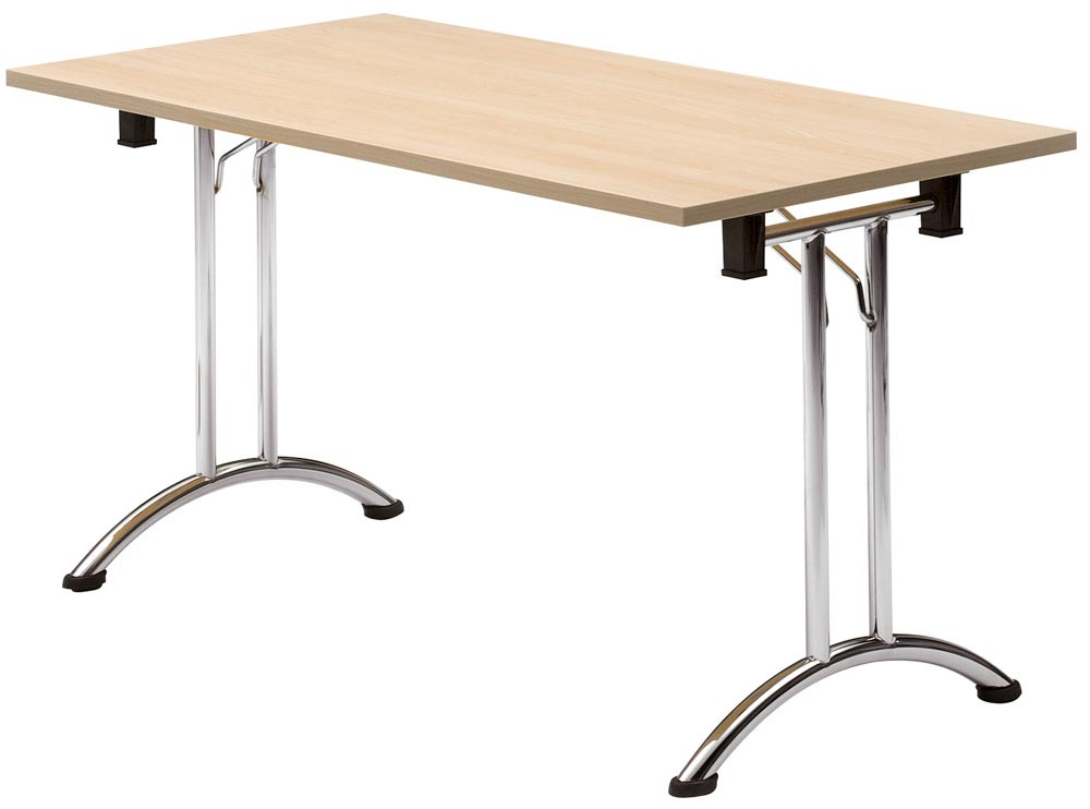 Klapptisch, BxTxH 1400x700x720 mm, T-Fuß-Gestell verchromt, gebogene Kufen, melaminharzbesch. Platte buche E6476452