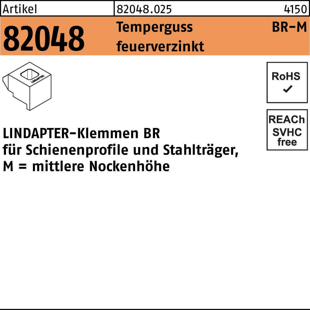 Artikel 82048 Temperguss BR-M feuerverzinkt LINDAPTER-Klemmen BR für Schienenprofile und Stahlträger · mittlere Nockenhöh - Abmessung: BR 12 / 6,0 VE=S (1 Stück )