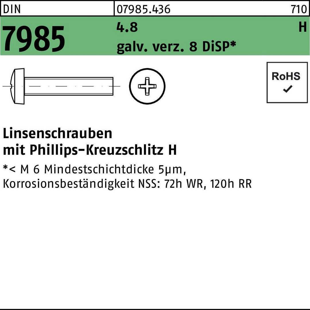 DIN 7985 4.8 H galv. verz. 8 DiSP Linsenschrauben mit Phillips-Kreuzschlitz H - Abmessung: M 4 x 8-H VE=S (2000 Stück )