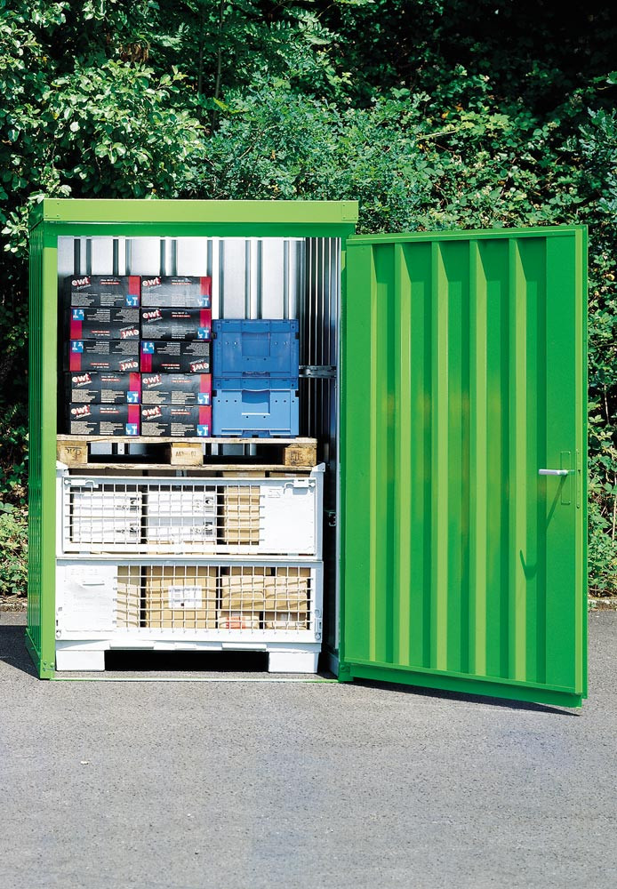 Materialbox aus Trapezblechen, verzinkt, mit Holzfußboden, mit hochstellbarem Dach, BxTxH 1430x1050x1475 mm E828975
