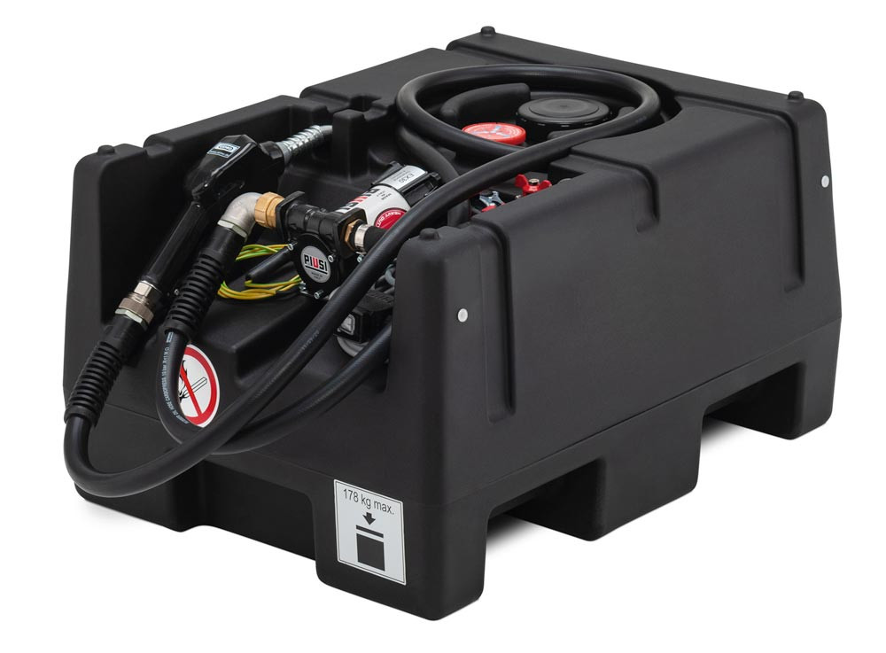 Mobile Benzintankstation, Vol. 120 l, Elektropumpe 12 V, 25 l/min, Zapfpistole, BxTxH 800x600x450 mm, Gewicht 33 kg E6423320