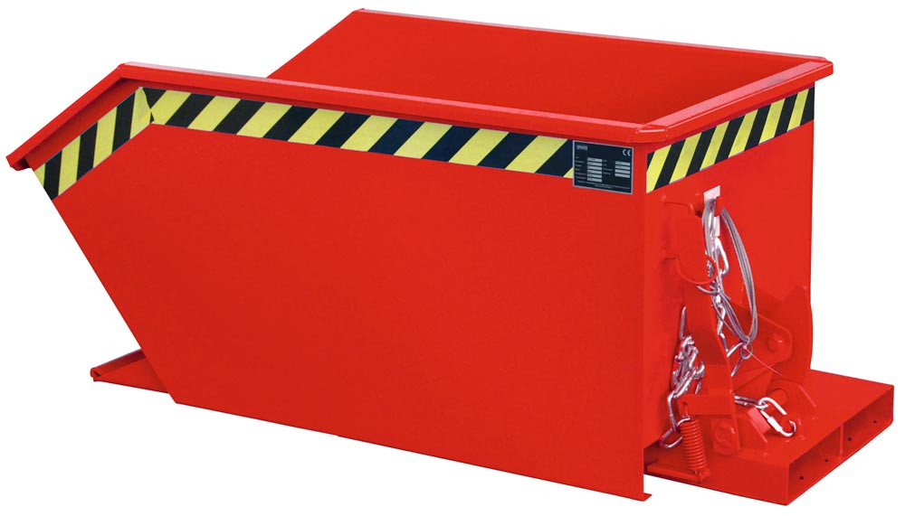 Mulden-Selbstkippbehälter, automatischer Aufrichter, Traglast 750 kg, LxBxH 1440x680x580 mm, Vol. 0,30 cbm, RAL 3000 feuerrot