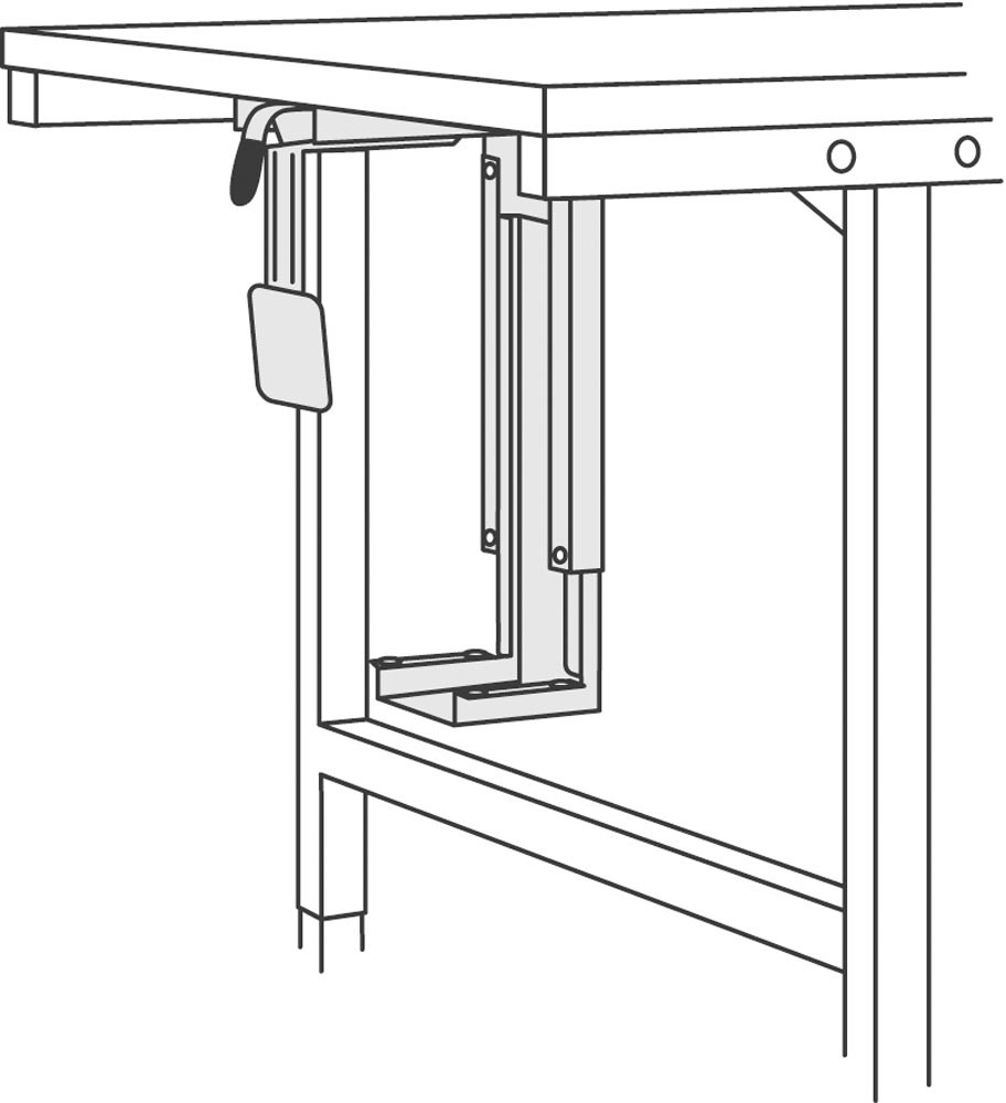 PC-Halterung zur Untertischmontage, verstellbar, Innenbreite 78-220 mm, Innenhöhe 307-531 mm, silbergrau E835943