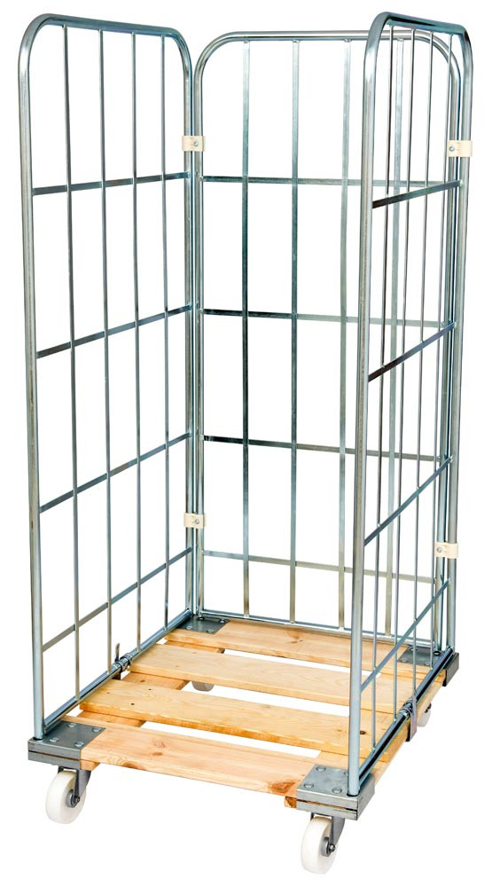 Rollbox, 3-seitig, Nutzhöhe 1460 mm, LxBxH 810x720x1640 mm, Bodenplatte aus Holz, natur