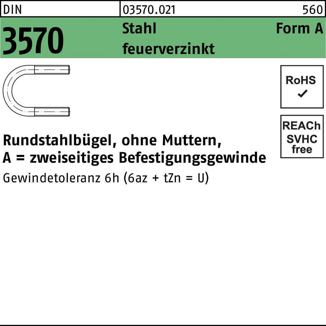 Rundstahlbügel DIN 3570 o.Mutter A 46/NW 32 Stahl galv.verz. 100Stück 8000189403