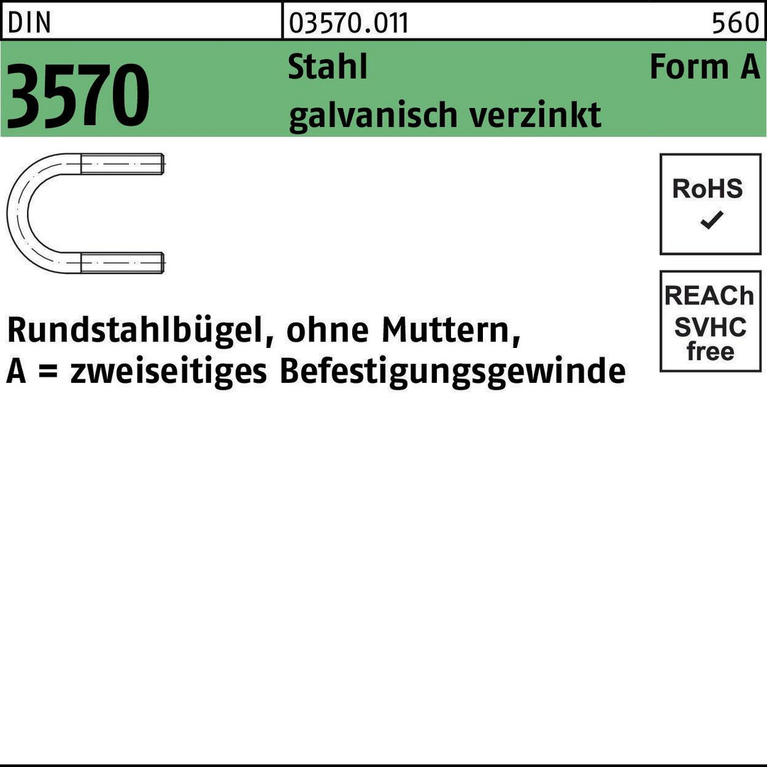 Rundstahlbügel DIN 3570 o.Mutter A 30/NW 20 Stahl galv.verz. 100Stück 8000189401