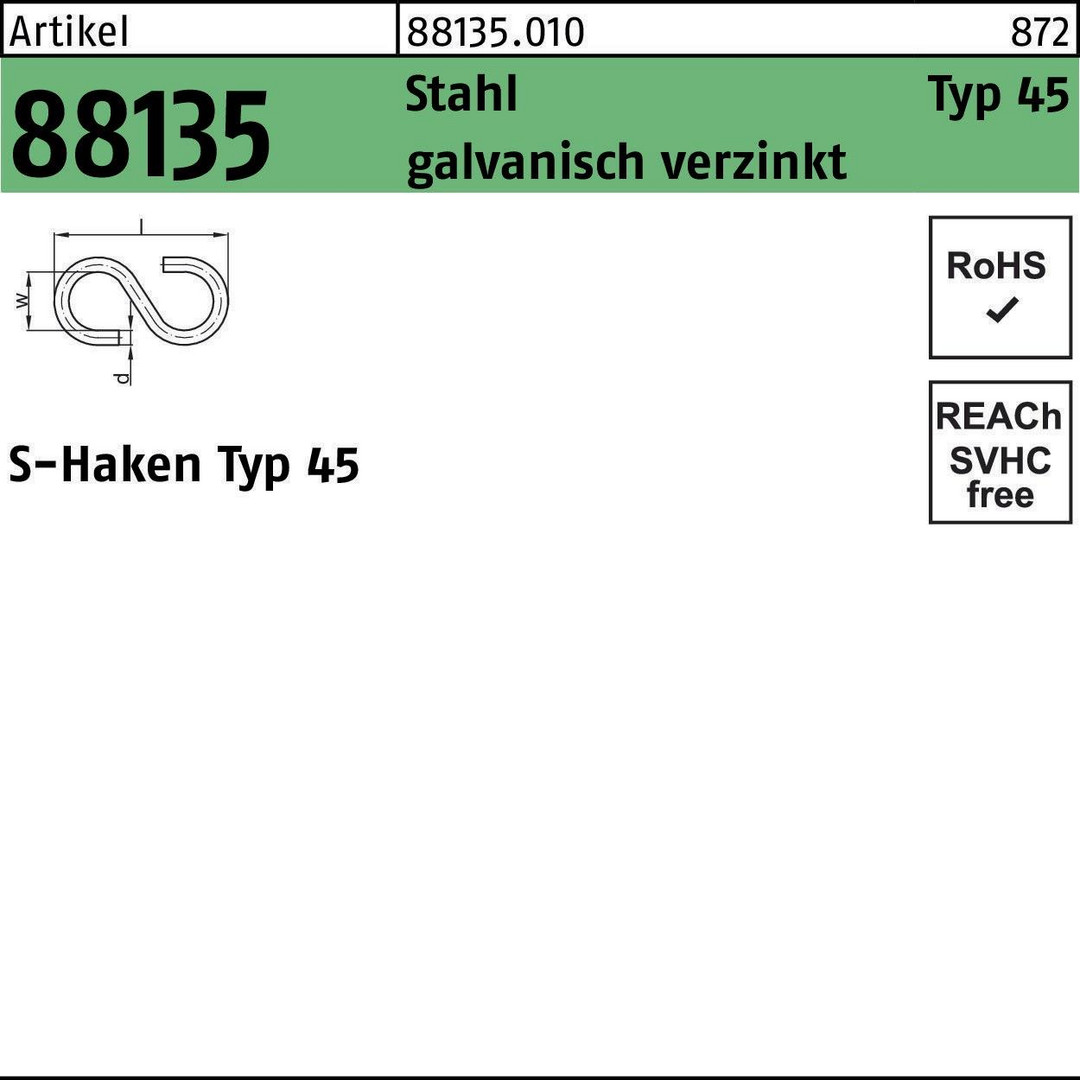 S-Haken R 88135 Typ 45 25x 8x 2,3 Stahl galv.verz. 100 Stück