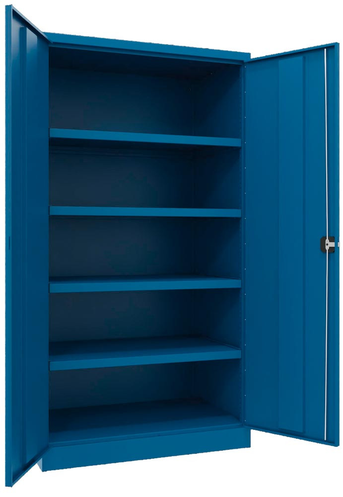 Schwerlastschrank, Vollblechtüren, ohne Trennwand, 4 Böden, 200 kg Traglast, BxTxH 1040x630x1950 mm, RAL 5010 E6490146