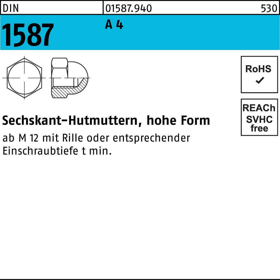 DIN 1587 A 4 Sechskant-Hutmuttern · hohe Form - Abmessung: M 12 SW 19 VE=S (200 Stück )