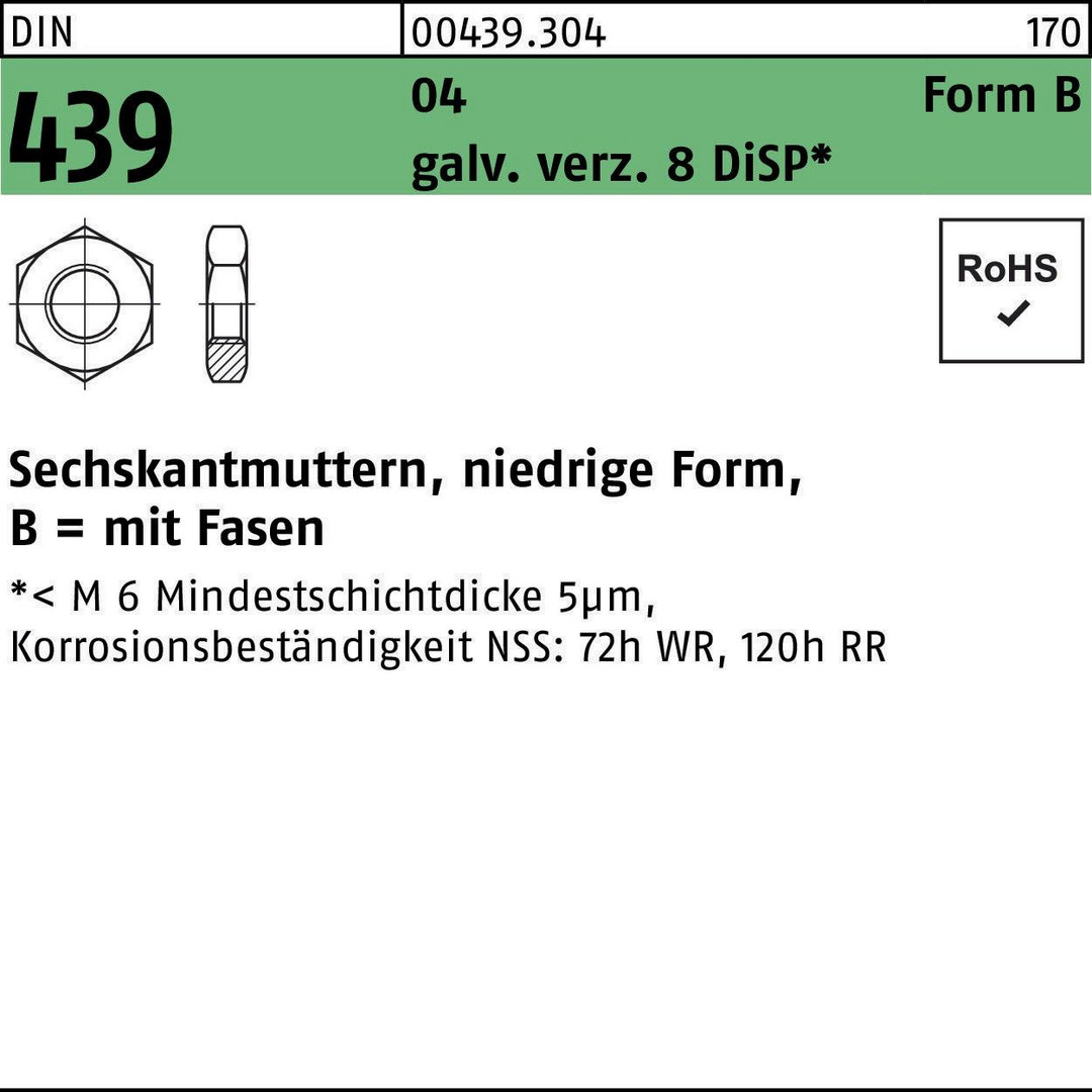 DIN 439 04 Form B galv. verz. 8 DiSP Sechskantmuttern · niedrige Form · mit Fasen - Abmessung: BM 3 VE=S (1000 Stück )