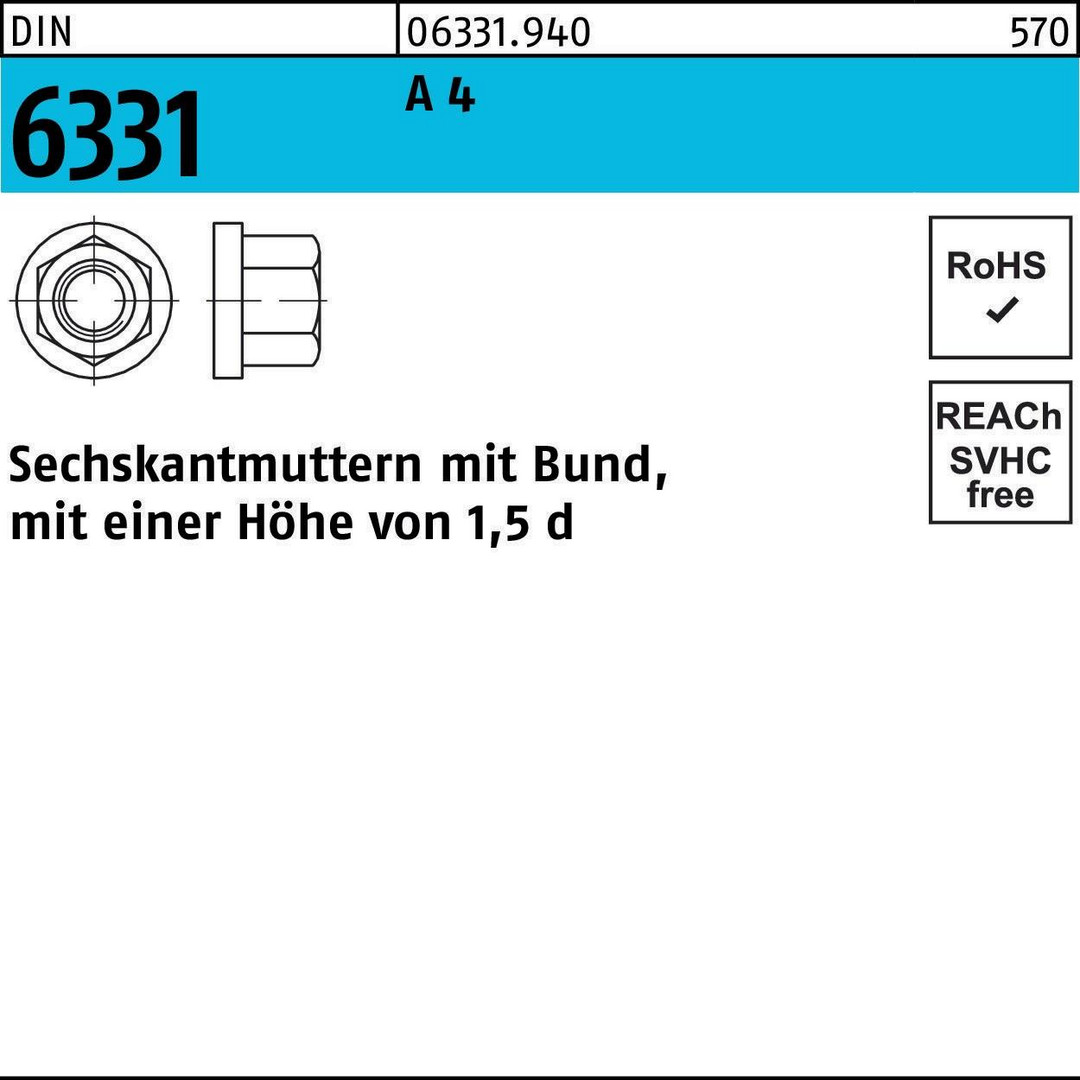 Sechskantmutter DIN 6331 Bund M16 SW 24 A 4 10 Stück