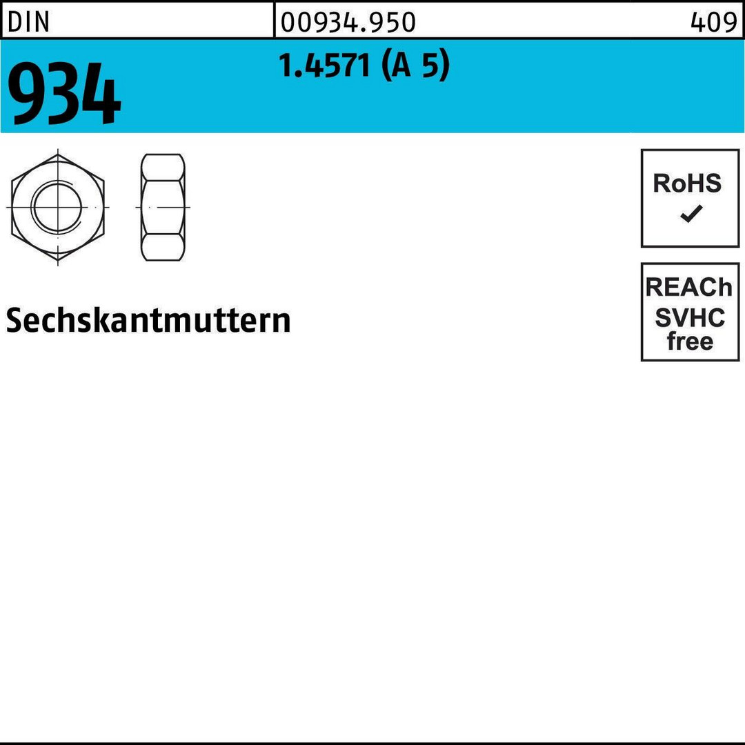 DIN 934 1.4571 (A 5) Sechskantmuttern - Abmessung: M 12 VE=S (50 Stück )