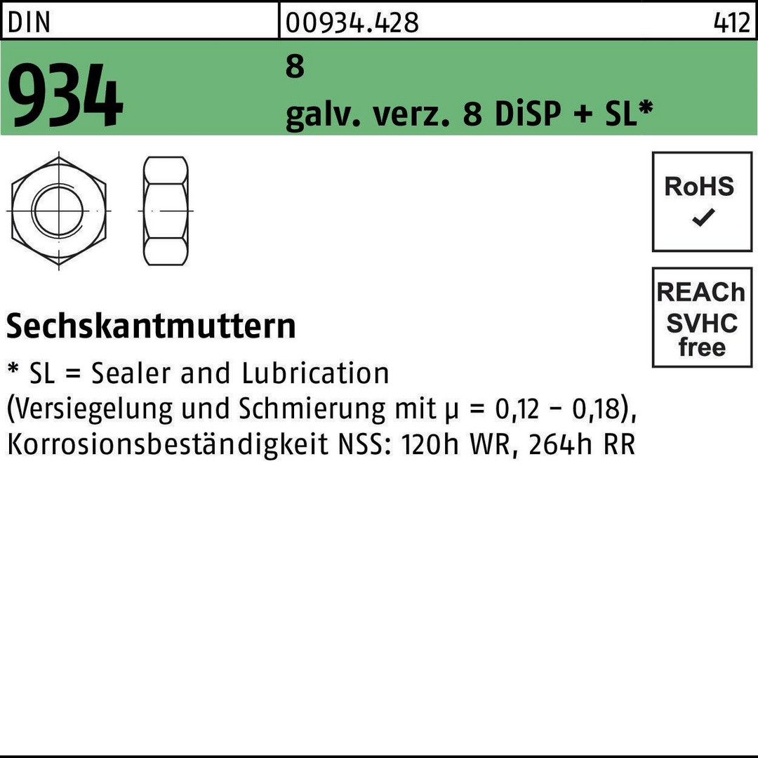 Sechskantmutter DIN 934 M12 gal Zn 8 DiSP + SL 500 Stück 8000175567