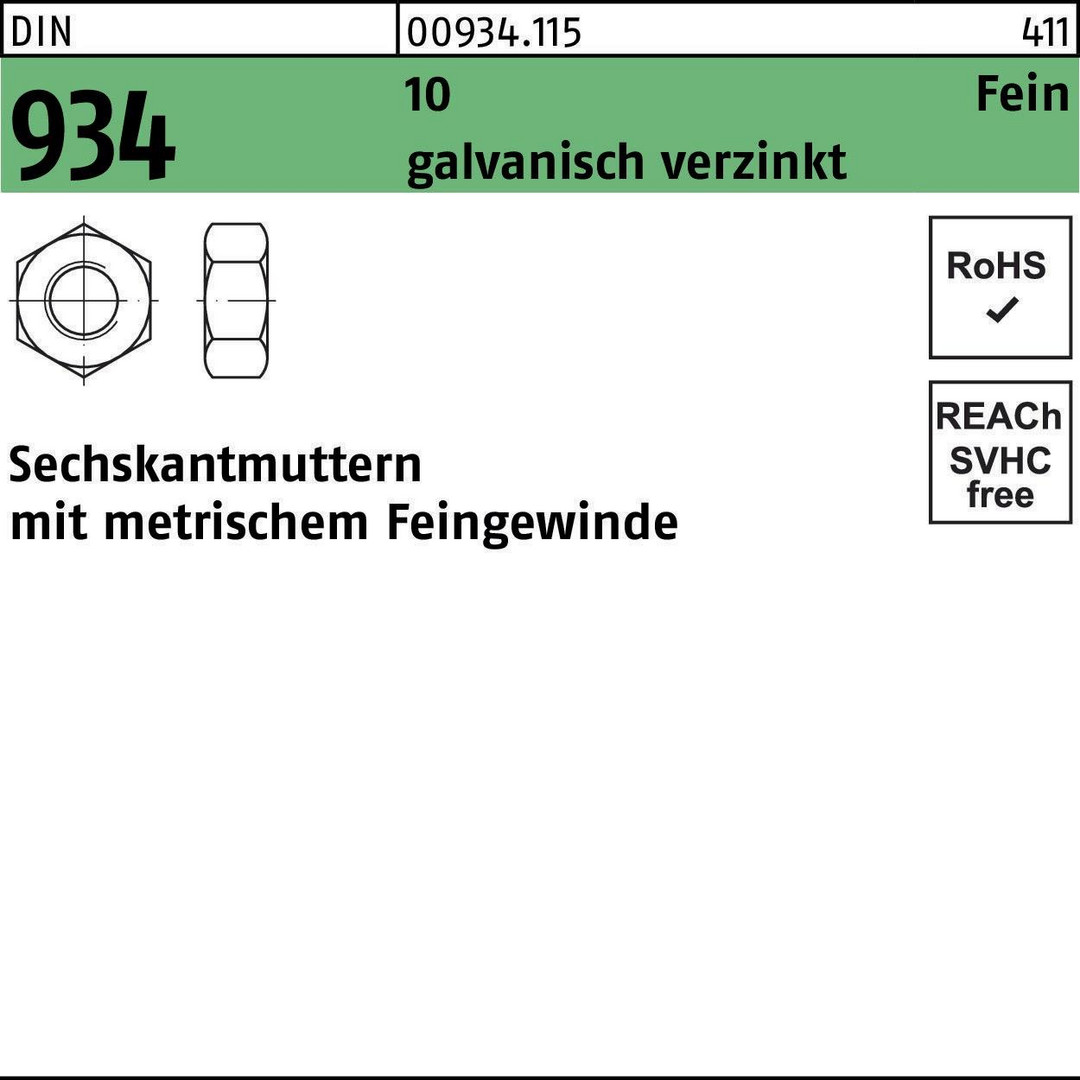 DIN 934 10 Fein galvanisch verzinkt Sechskantmuttern mit metrischem Feingewinde - Abmessung: M 14 x 1,5 VE=S (100 Stück )