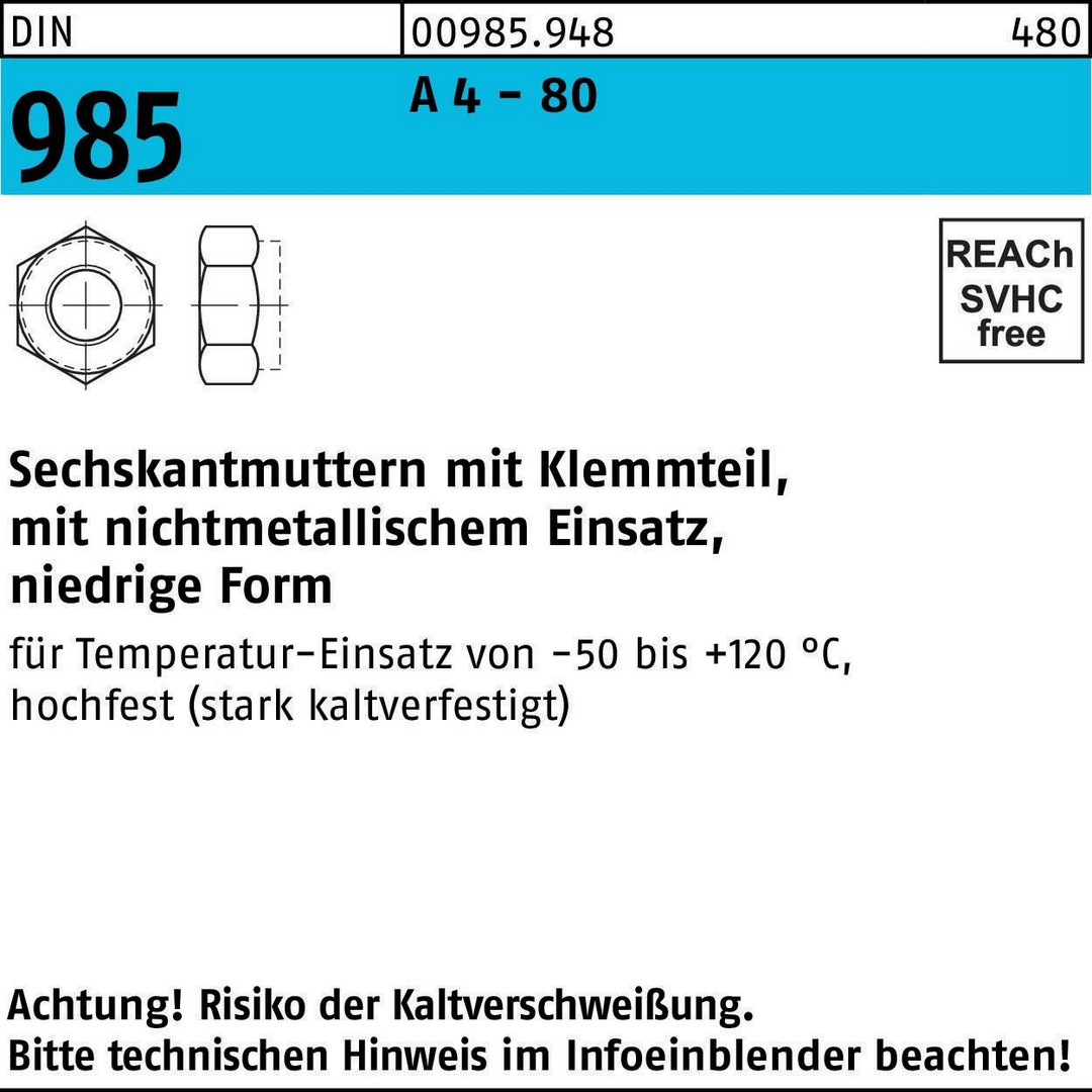 | Norm | DIN 985 |
