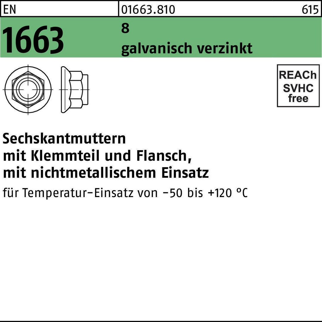 EN 1663 8 galvanisch verzinkt Sechskantmuttern mit Klemmteil und Flansch · mit nichtmetallischem Einsatz - Abmessung: M 16 VE=S (100 Stück )
