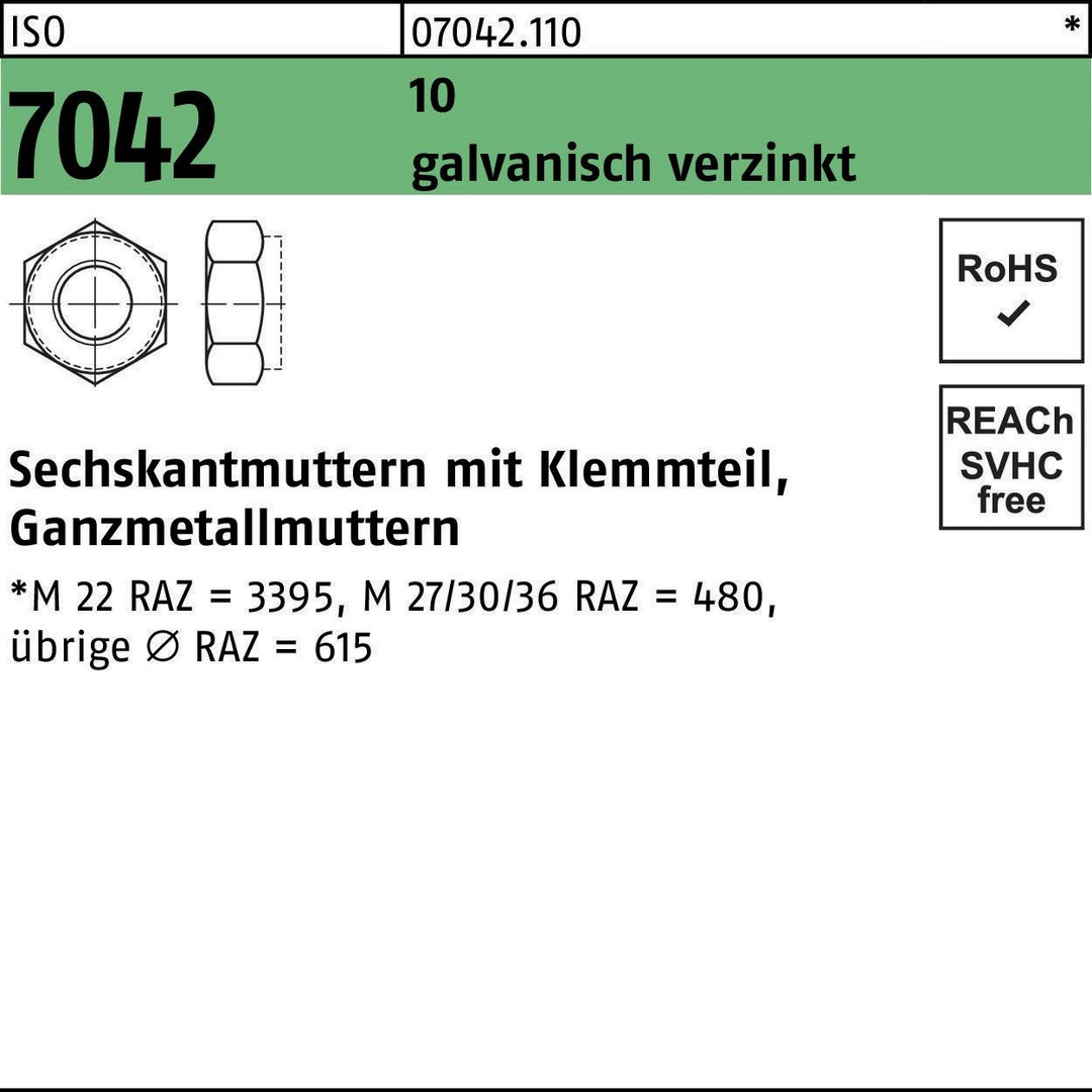 Sechskantmutter ISO 7042 Klemmteil M10 10 galv.verz. 100 Stück 8000208799