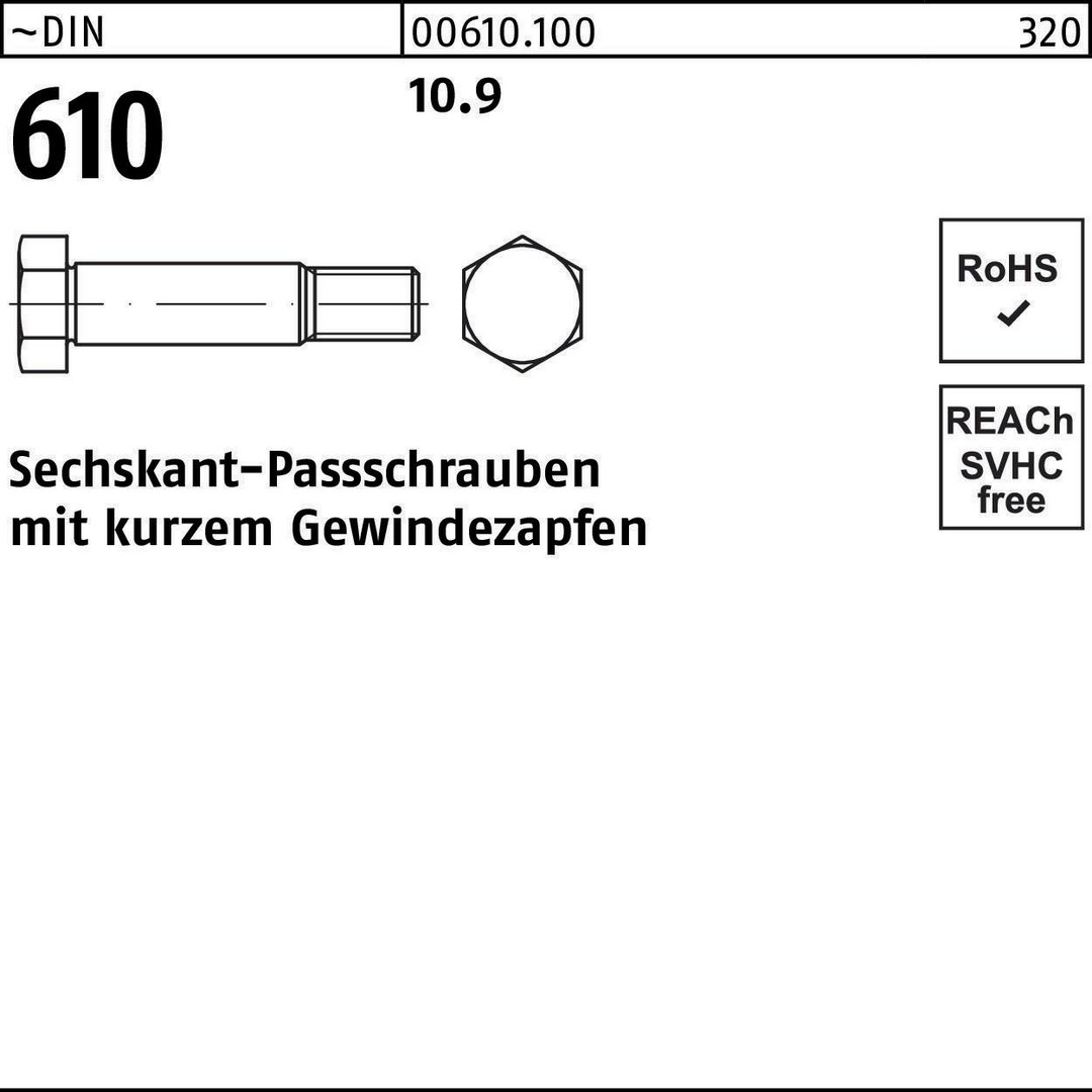 | Ausführung | Sechskant-Passschrauben mit kurzem Gewindezapfen |