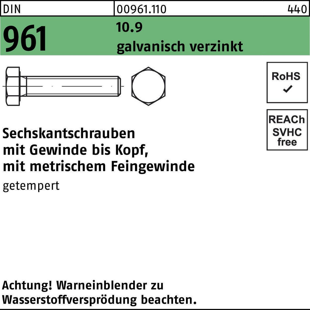 DIN 961 10.9 galvanisch verzinkt Sechskantschrauben mit Gewinde bis Kopf · mit metrischem Feingewinde - Abmessung: M 8 x1 x 30 VE=S (200 Stück )