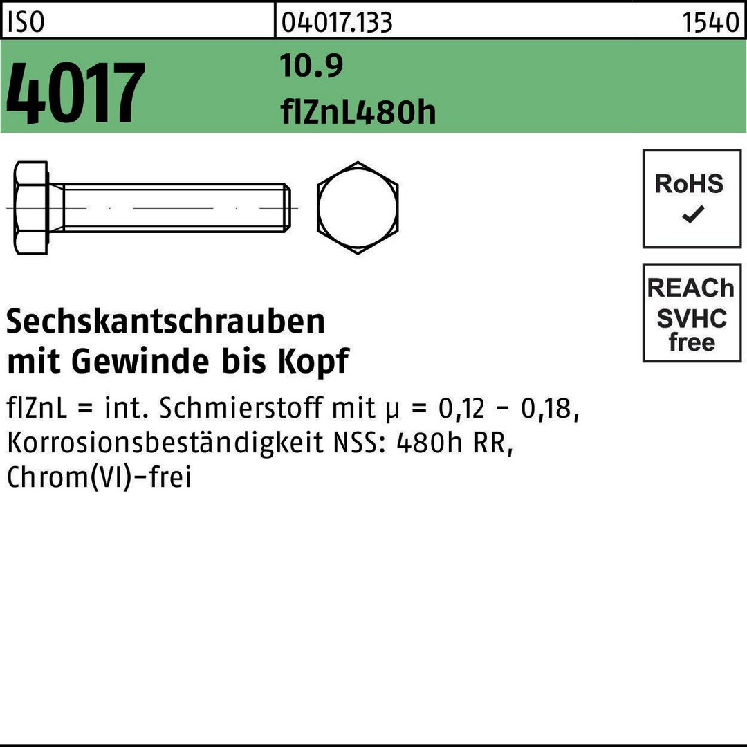 ISO 4017 10.9 flZnL 480h (zinklamellenbesch.) Sechskantschrauben mit Gewinde bis Kopf - Abmessung: M 6 x 25 VE=S (500 Stück )