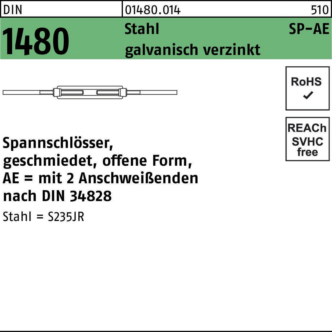| Ausführung | Spannschlösser, geschmiedet, offene Form, AE = mit 2 Anschweißenden nach DIN 34828 |