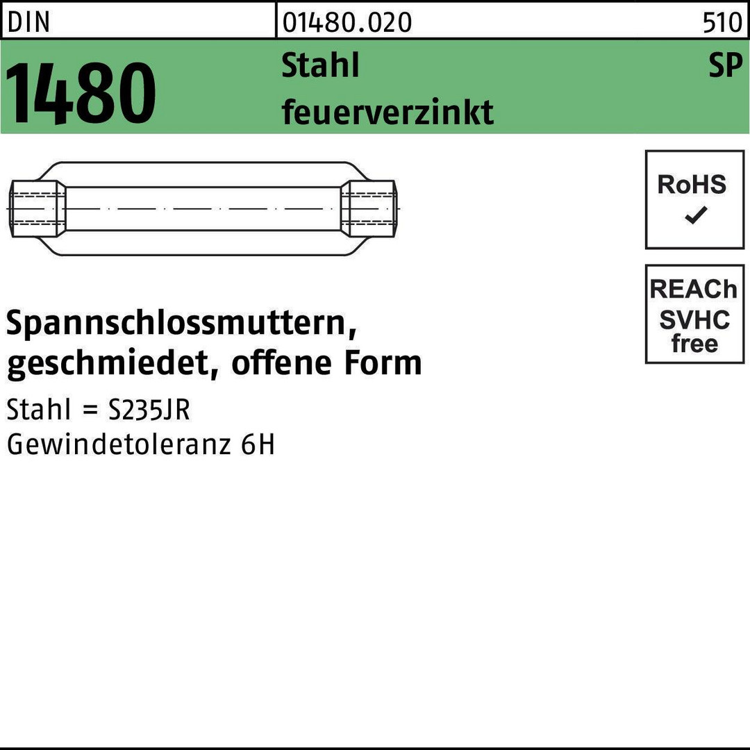 DIN 1480 Stahl SP feuerverzinkt Spannschlossmuttern · geschmiedet · offene Form - Abmessung: SP M 24 / 255 VE=S (1 Stück )