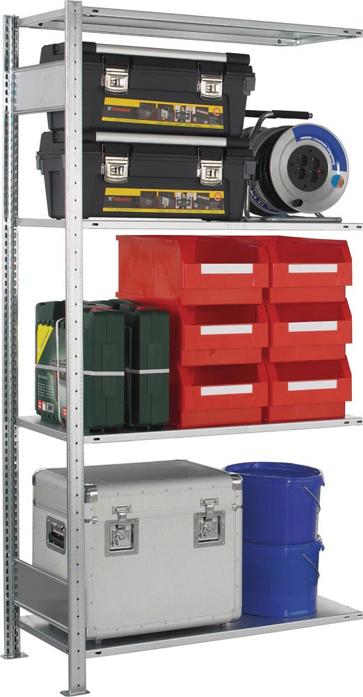 Steckregal, Anbaufeld, verzinkt, 4 Fachböden, Fachlast 150 kg, BxTxH 1000x500x2000 mm