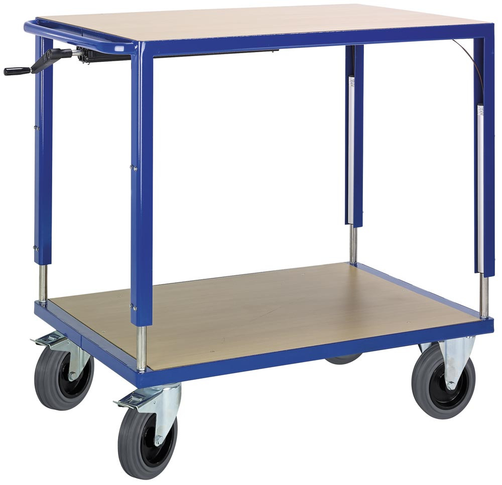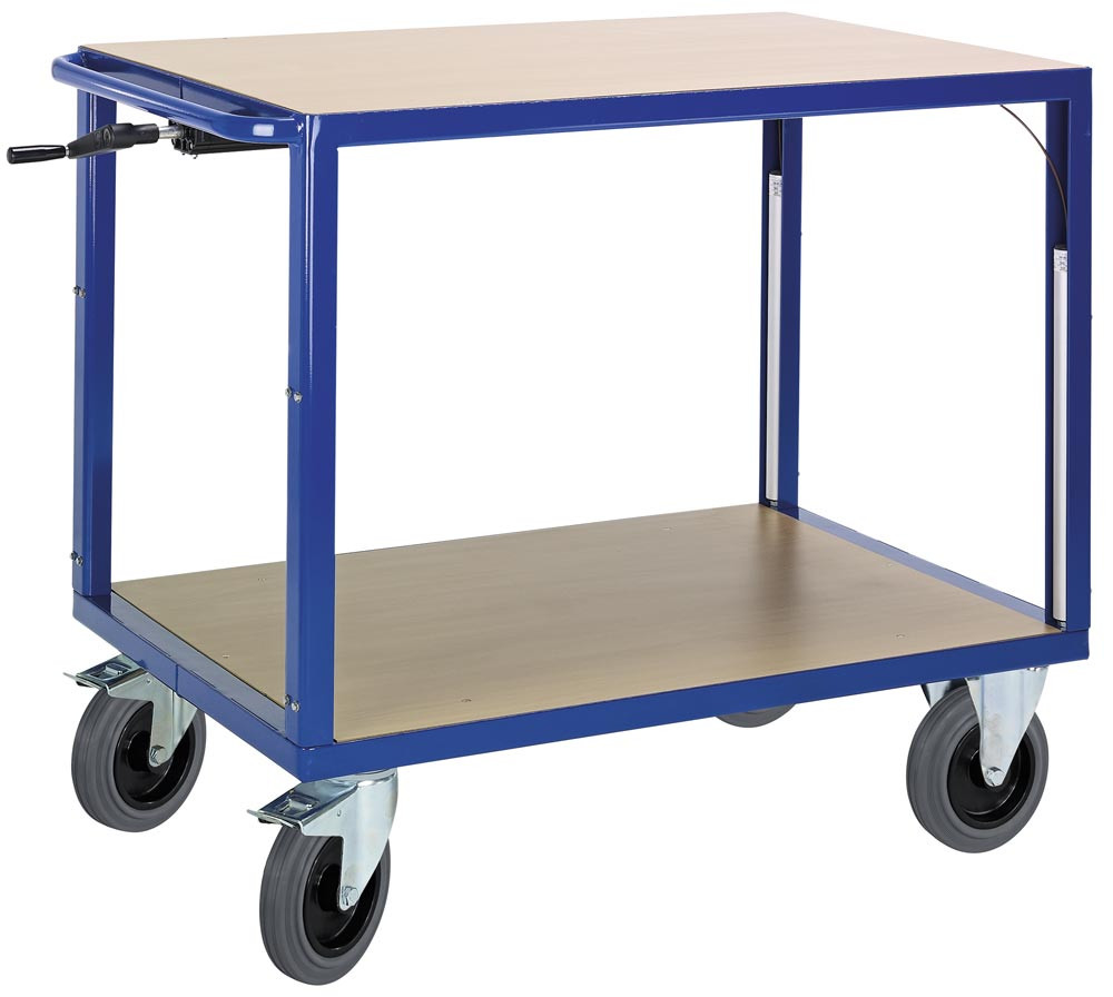 Tischwagen mit 2 Ladeflächen(MDF), höhenverstellbar, fahrbar, BxTxH 1160x700x980-1280 mm, RAL 5010 E873344