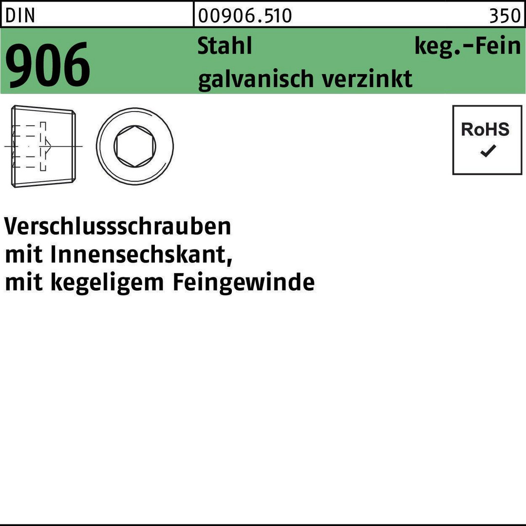DIN 906 Stahl keg.-Fein galvanisch verzinkt Verschlussschrauben mit Innensechskant · mit kegeligem Feingewinde - Abmessung: M 33 x 2 VE=S (10 Stück )