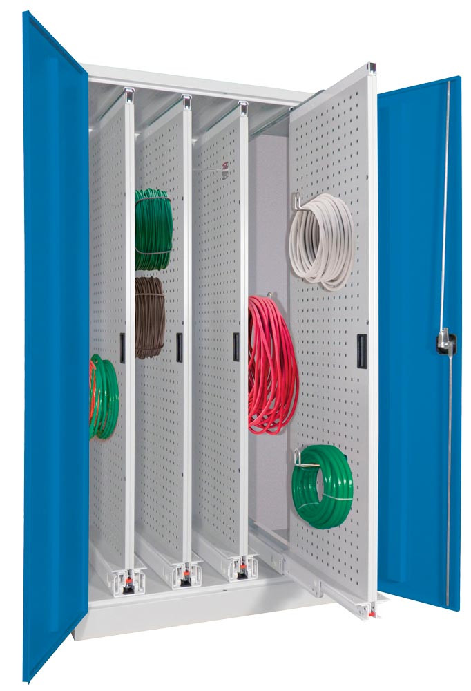 Vertikalauszugschrank, 3 Auszüge mit Lochplatten, BxTxH 1000x600x1950 mm, RAL 5010 E6490174