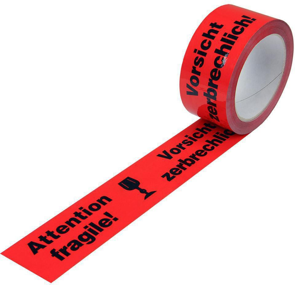 Warnklebeband Breite 50mm L.66m S.52µ PP rot Aufdruck Vorsicht zerbrechlich