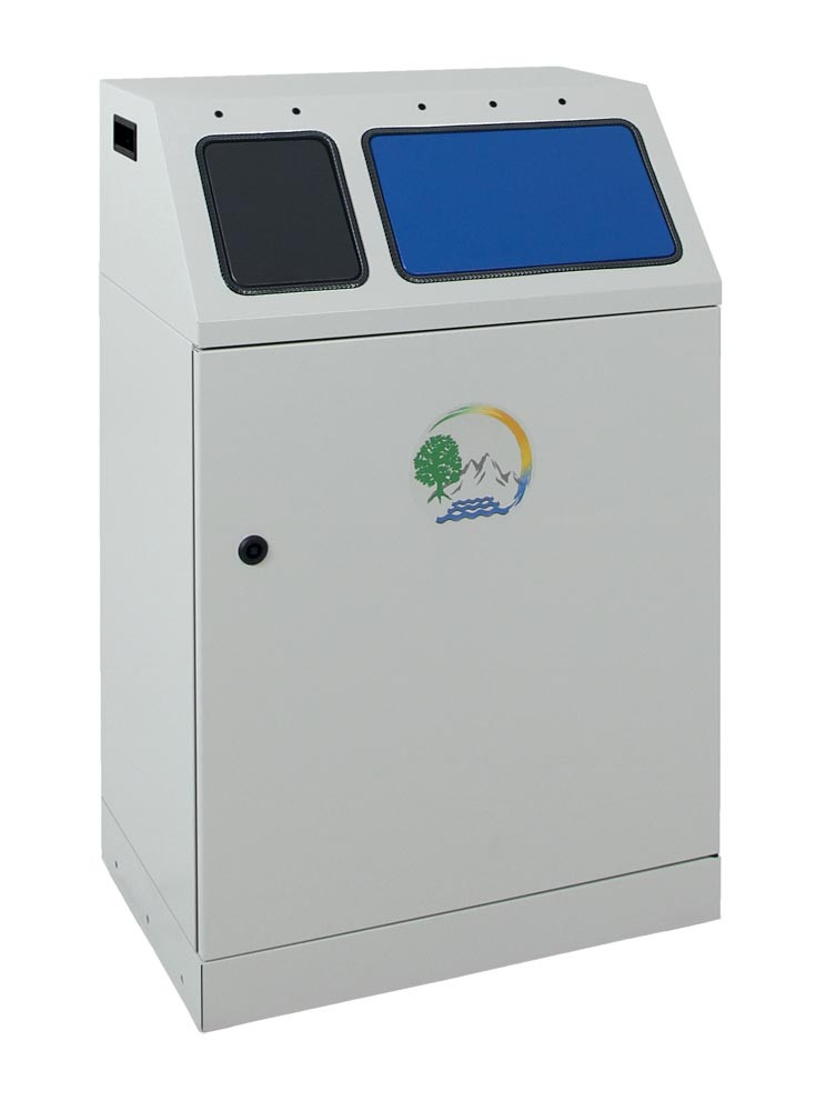 Wertstoffsammler, Volumen 1x30 + 1x60 Liter, BxTxH 580x380x920 mm, Korpus RAL 7035 lichtgrau, Schwingdeckel blau + anthrazit, verzinkte Innenbehälter E1967228