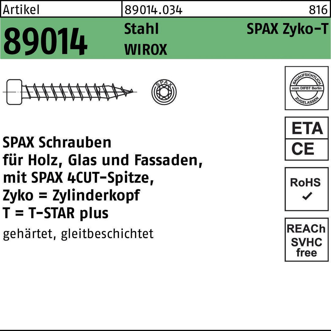 ZYLKOschraube R 89014 T-STAR 6x 100-T30 Stahl WIROX 100 Stück SPAX 8000232952