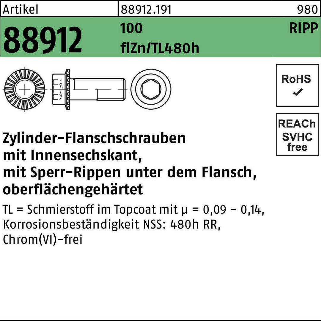 Zylinderflanschschraube R 88912 Sperr-Ripp In.-6kt M6x12 100 flZnnc480h-L 500St 8000232381