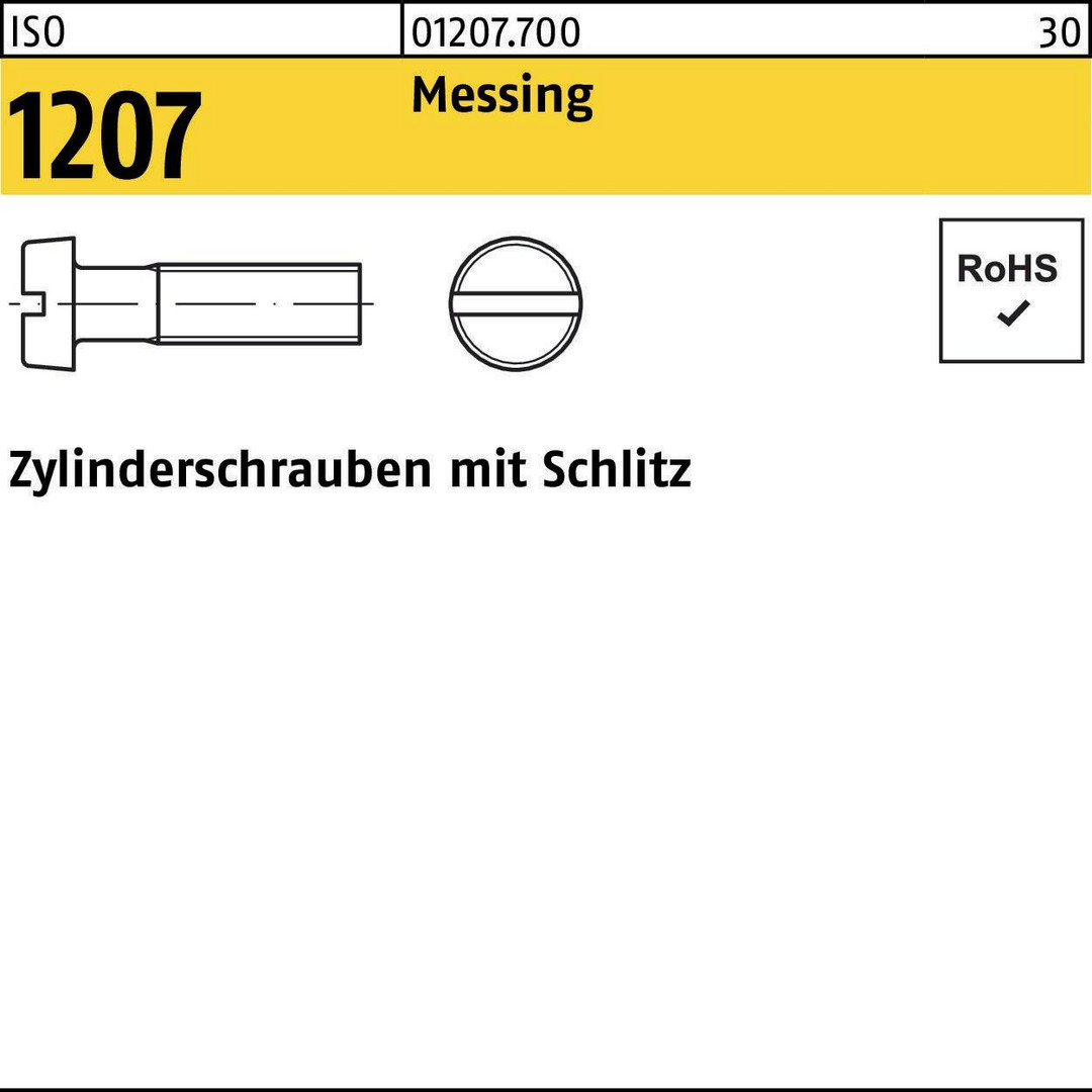 Zylinderschraube ISO 1207 Schlitz M4x 6 Messing 1000 Stück